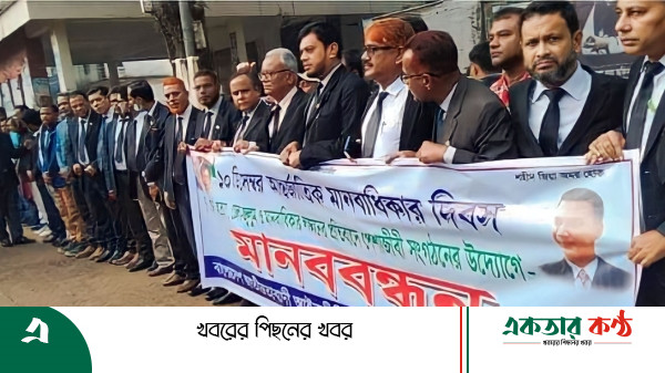 রবিবার (১০ ডিসেম্বর) সকালে আন্তর্জাতিক মানবাধিকার দিবস উপলক্ষে জাতীয়তাবাদী আইনজীবী ফোরাম টাঙ্গাইল জেলা ইউনিটের উদ্যোগে আদালত প্রাঙ্গনে এই মানববন্ধন ও প্রতিবাদ সমাবেশের আয়োজন করা হয়।