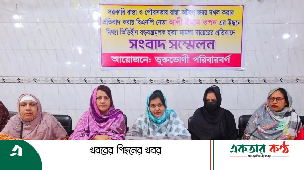সংবাদ সম্মেলনে লিখিত বক্তব্য পাঠ করেন ভুক্তভোগী মইনুল রহমান জুয়েলের স্ত্রী সালমা আক্তার। তিনি বলেন, আমরা টাঙ্গাইল পৌর সভার ৬নং ওয়ার্ডের কলেজ পাড়া ও প্যাড়াডাইস পাড়ার বাসিন্দা। আমাদের বাসায় যাতায়াতের জন্য দীর্ঘ দিনের ১০ শতাংশ রাস্তাটি জেলা প্রশাসক ভূমি প্রজ্ঞাপন আকারে বরাদ্দ প্রদান করেছেন। যাহা টাঙ্গাইল পৌর সভার রেকর্ড ও নকশাকৃত। এমতাবস্থায় স্থানীয় বাসিন্দা ও প্রতিবেশী এডভোকেট আলী ইমাম তপন ও তার ভাই আলী আযম রিপন উক্ত ভূমি জোর পূর্বক দখল করতে আসলে আমার স্বামী মইনুল রহমান জুয়েল ও প্রতিবেশী আনোয়ার হোসেন শহীদসহ এলাকাবাসী বাধা প্রদান করে। এই কারনে ক্ষিপ্ত হয়ে টাঙ্গাইল রিক্সা শ্রমিক ইউনিয়নের উপদেষ্টা এডভোকেট আলী ইমাম তপন গত ১৯ নভেম্বর রিকশা শ্রমিক ইউনিয়ন অফিসে মারামারি, ভাঙচুর ও অগ্নিসংযোগের ঘটনায় দায়ের করা মামলায় আমার স্বামী মইনুল রহমান জুয়েল, প্রতিবেশী আনোয়ার হোসেন শহীদসহ এলাকার বড় ভাই মাই টিভির জেলা প্রতিনিধি মির্জা মাসুদ রুবলকে জড়িয়ে মিথ্যা মামলা দায়ের করে। যাহা টাঙ্গাইল সদর থানার মামলায় নং- সি আর ২৭১২/ ২৪। এই মামলায় আমার স্বামী মইনুল রহমান জুয়েল ৯নং আসামি ও প্রতিবেশী আনোয়ার হোসেন শহীদকে ১০নং আসামি করা হয়েছে। একই ঘটনায় রিক্সা শ্রমিক ইউনিয়নের সাধারণ সম্পাদক গত ২১ নভেম্বর আরও একটি মামলা দায়ের করেন। যাহা আদালতে ৩৮৮/২৪ জি আর মোকাদ্দমা হিসেবে চলমান আছে। উক্ত রাস্তাটি পাকা করন ও ড্রেনের টেন্ডার আহ্বান করার কারনে টাঙ্গাইল পৌর সভার সাবেক মেয়র এস.এম সিরাজুল হক আলমগীরকে মামলার ১নং আসামি করা হয়েছে।