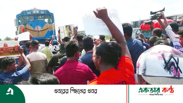 টাঙ্গাইলে ট্রেন আটকে গেটম্যানের দাবিতে মানববন্ধন - Ekotar Kantho